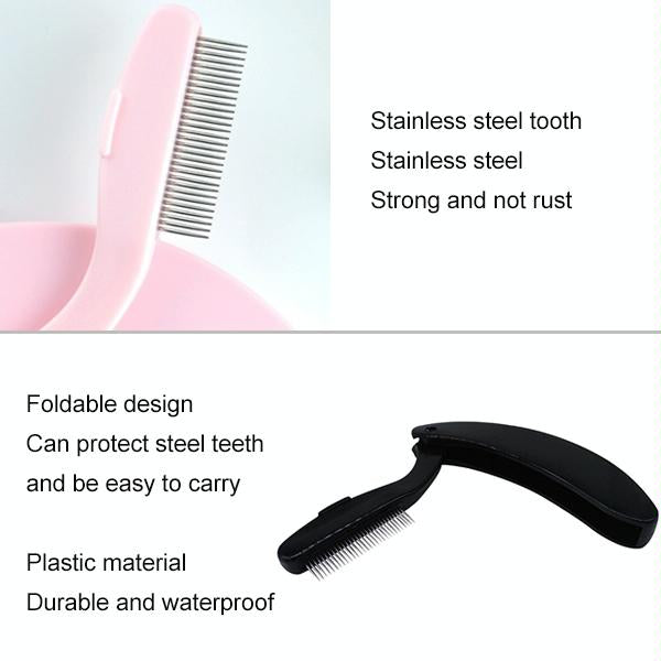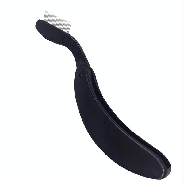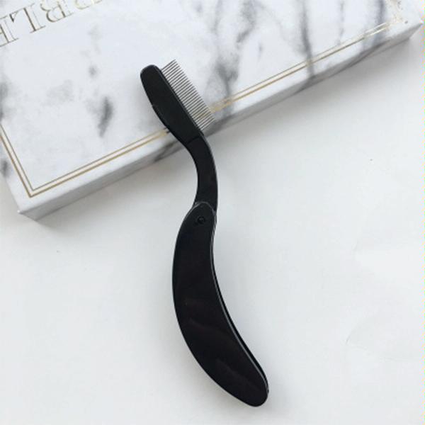 Folding Eyelash Comb Lash Separator Mascara Lift Curl Metal Brush Makeup Tool(Black)