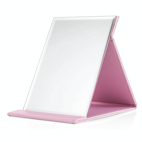 Folding Portable High-definition Makeup Mirror PU Leather Desktop Vanity Mirror,Size: Extra Large (Pink)