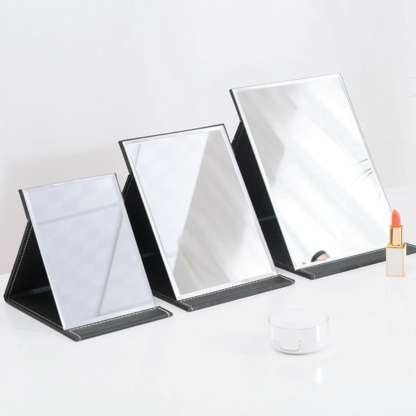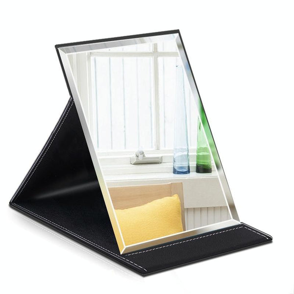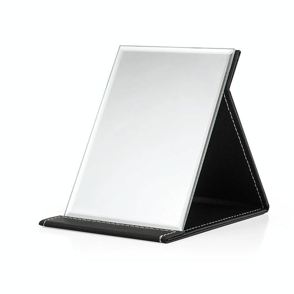 Folding Portable High-definition Makeup Mirror PU Leather Desktop Vanity Mirror,Size: Medium (Black)