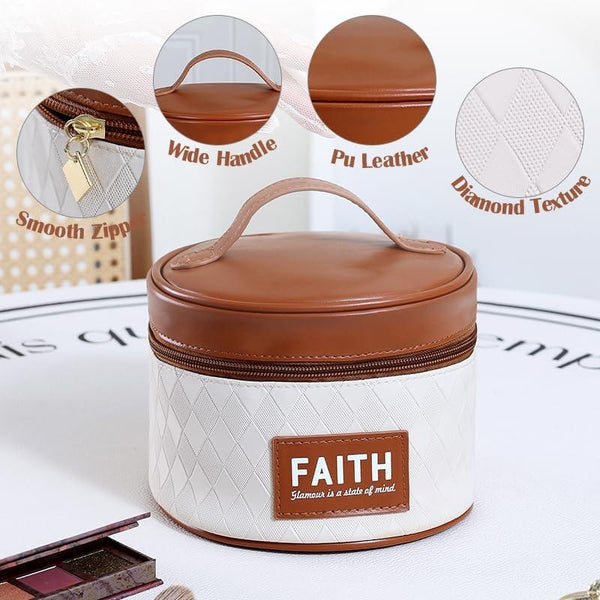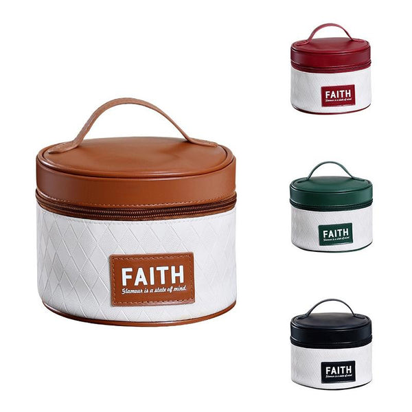 Handheld PU Barrel Cosmetic Bag Cosmetic Storage Bag Travel Toiletry Bag(Brown)