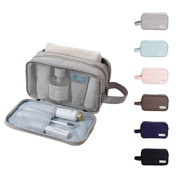Handheld Wet and Dry Separation Travel Toiletry Bag Large Capacity Cosmetic Storage Bag(Light Blue)