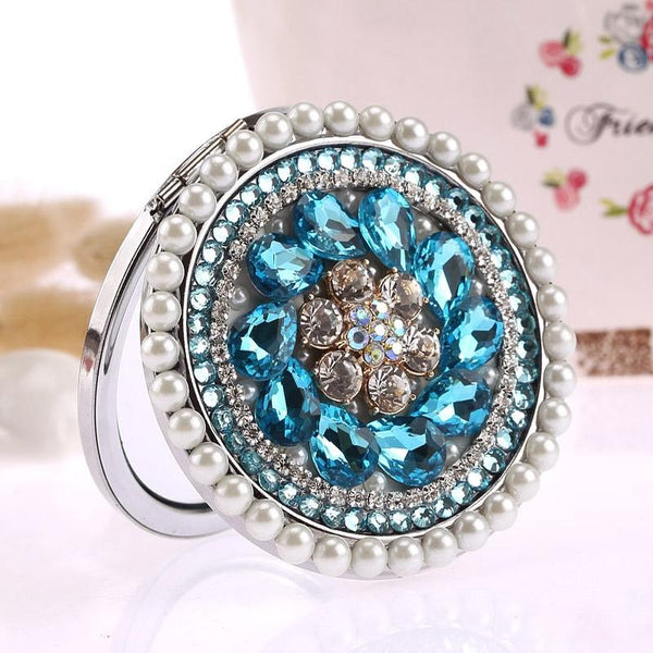 Handmade DIY Gemstone Diamond Mini Folding Cosmetic Mirror Double-sided Mirror
