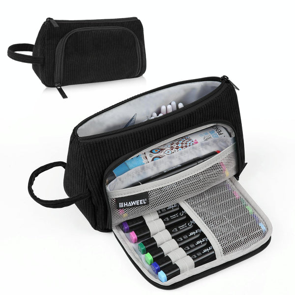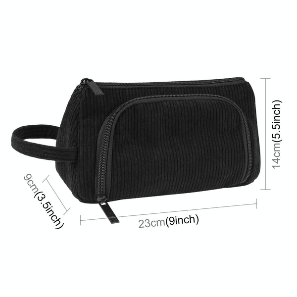 HAWEEL Corduroy Triangular Pen Case Makeup Pouch Travel Cosmetic Organizer Bag (Black)