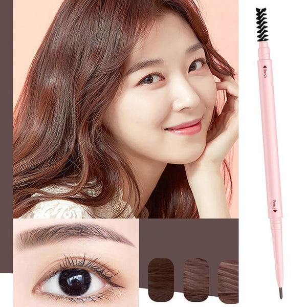 Kemelo Double-Headed Automatic Rotating Eyebrow Pencil Waterproof Sweat-Proof Non-Fading Thin Core Eyebrow Pencil(01 Temperament Brown)