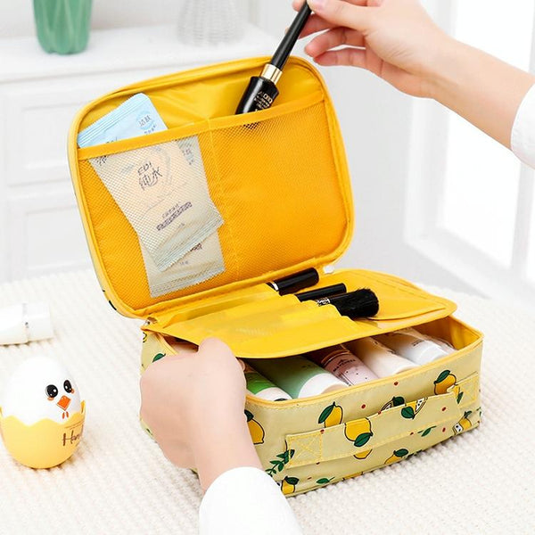 Large Capacity Portable Lady Waterproof Padded Travel Cosmetic Bag Beautician Storage Bags Women Makeup Bag(Style A Yellow Lemon)
