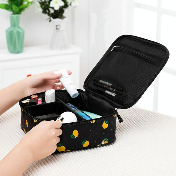 Large Capacity Portable Lady Waterproof Padded Travel Cosmetic Bag Beautician Storage Bags Women Makeup Bag(Style B Black Lemon)