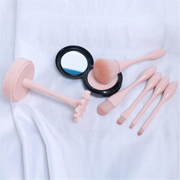 Mini Makeup Brush Set Portable Tool Beauty Makeup Brush Small Waist Brush, Style:Mini Skin Tone 5 Sticks + Stand