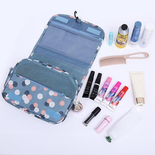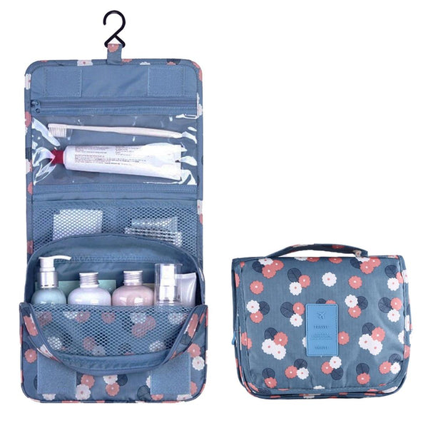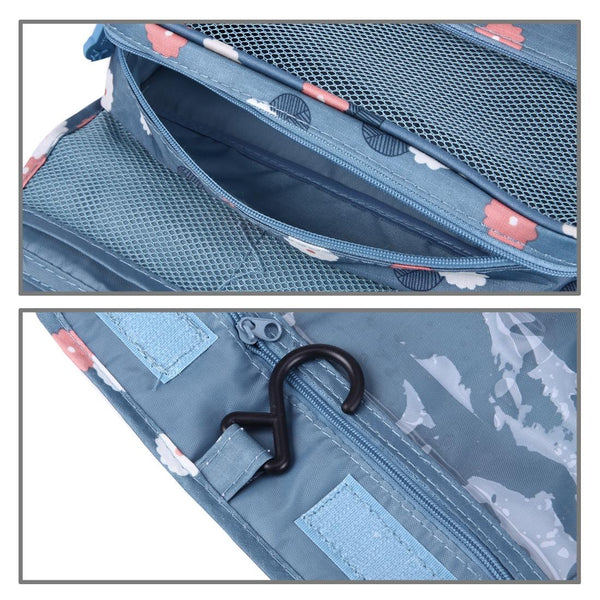 Multifunctional Hanging Style Flowers Pattern Travel Toiletry Pouch Wash Gargle Bag, Folding Size: 24.5 x 20.5 x 2.2cm