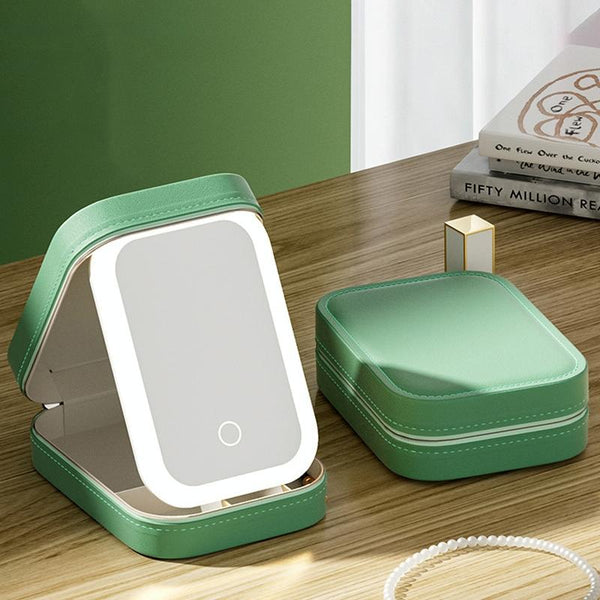 Multifunctional LED Light Cosmetic Mirror Cosmetic Bag Jewelry and Cosmetics Storage Box(Green)
