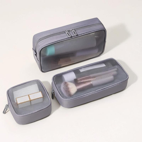 Multifunctional Portable Large Capacity Toiletry Cosmetic Bag, Color: Gray 3 PCS/Set