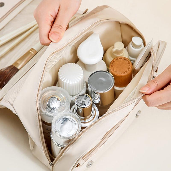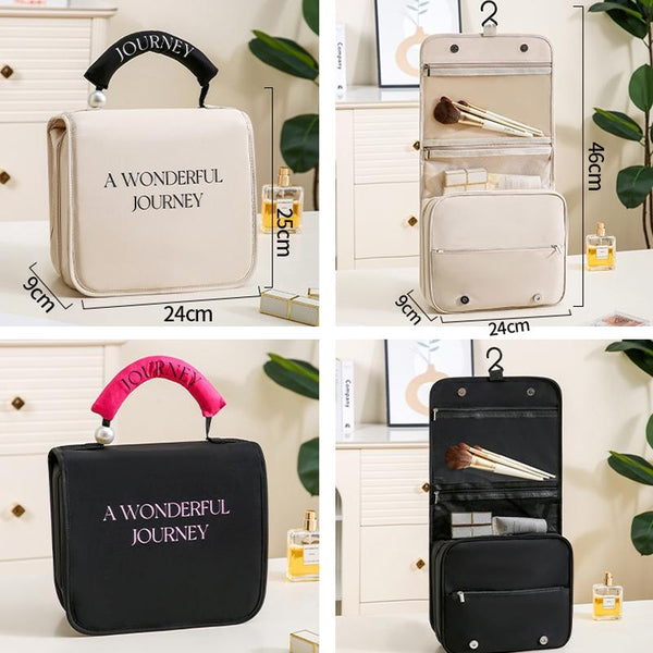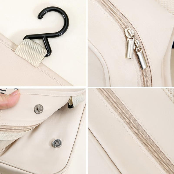 Pearl Portable Wash Bag Business Travel Hanging Large Capacity Makeup Bag Toiletries Organizer(Beige)