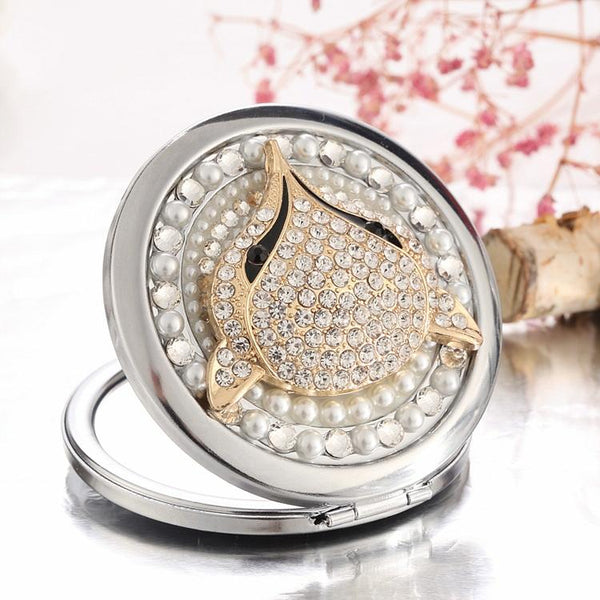 Personalized DIY Rhinestone Portable Makeup Mirror Double Mirror