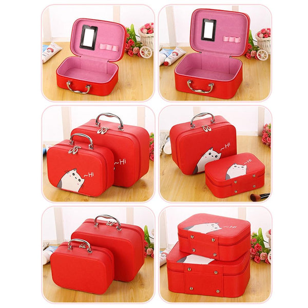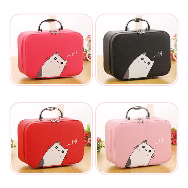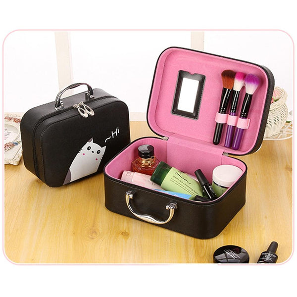Portable Big Capacity Cute Cartoon Waterproof Beauty Makeup Tools Kit Cosmetic Case, Size: L, 25*18.5*11cm(Black)