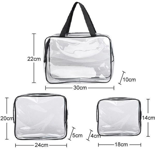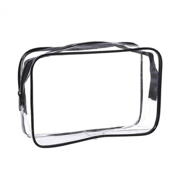 Portable Travel Zip Look PVC Bags Waterproof Transparent Makeup Storage Bag, SIZE:M(Black)