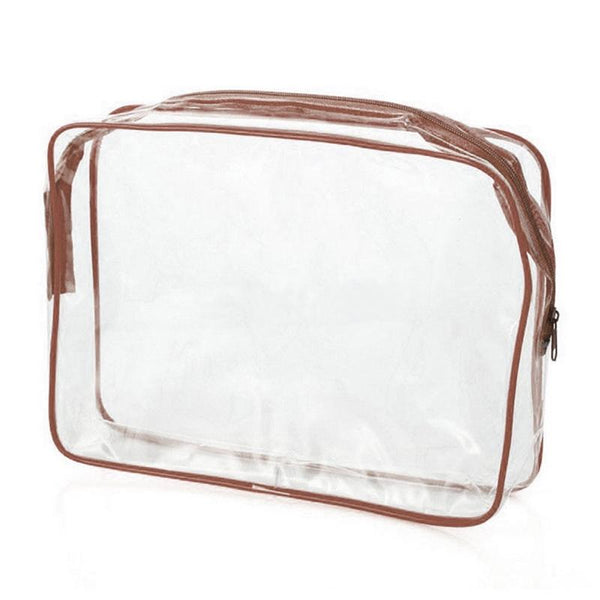 Portable Travel Zip Look PVC Bags Waterproof Transparent Makeup Storage Bag, SIZE:S(Brown)