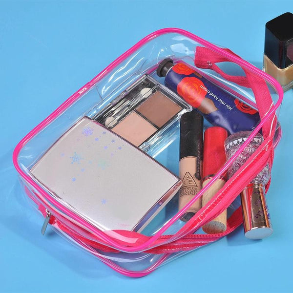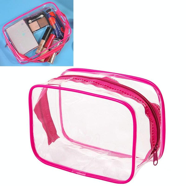 Portable Travel Zip Look PVC Bags Waterproof Transparent Makeup Storage Bag, SIZE:S(Pink)