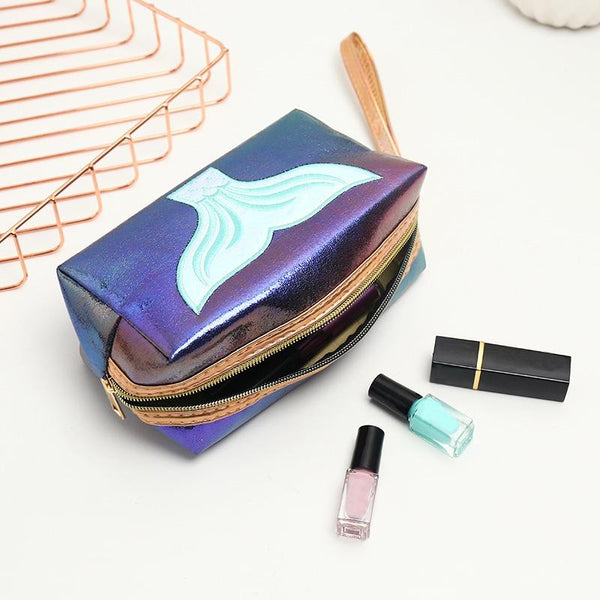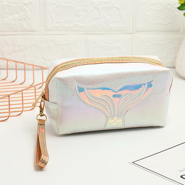 PU Laser Fishtail Portable Large Capacity Makeup Toiletries Bag(White)