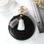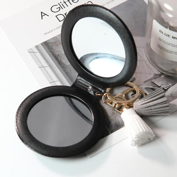 PU Leather Double Sided Girls Portable Folding Mirror Tassel Mini Makeup Mirror(Black)