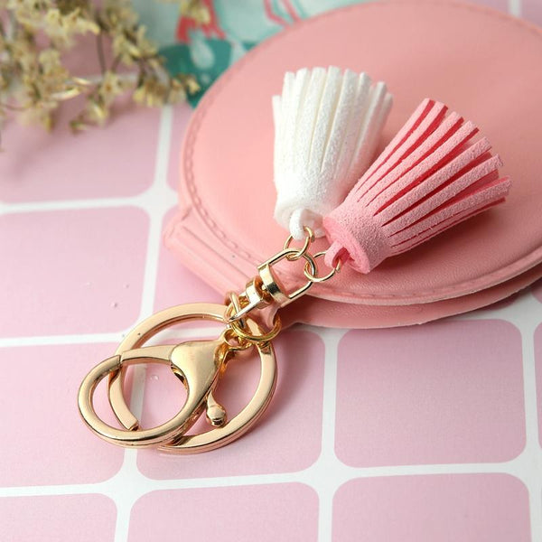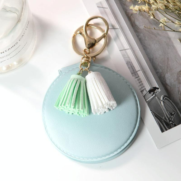 PU Leather Double Sided Girls Portable Folding Mirror Tassel Mini Makeup Mirror(Blue)