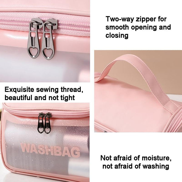 PVC Translucent Cosmetic Bag Frosted Toiletry Bag PU Flip Top Bath Bag(Black)