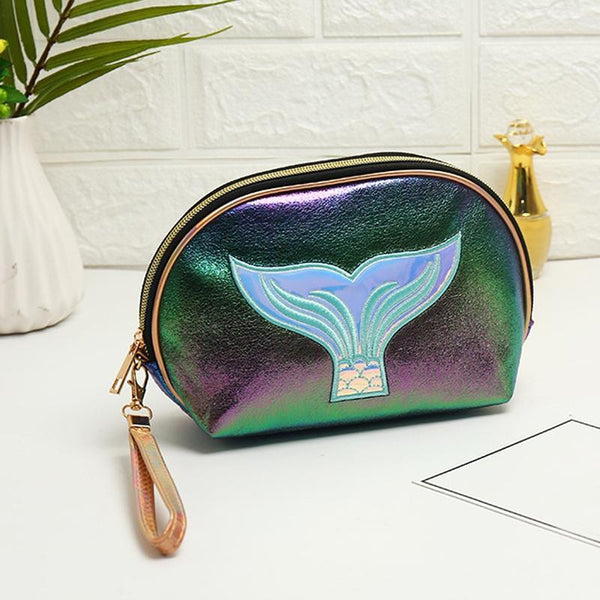 Semicircle Cartoon Fishtail Laser Makeup Toiletry Bag(Symphony Color)