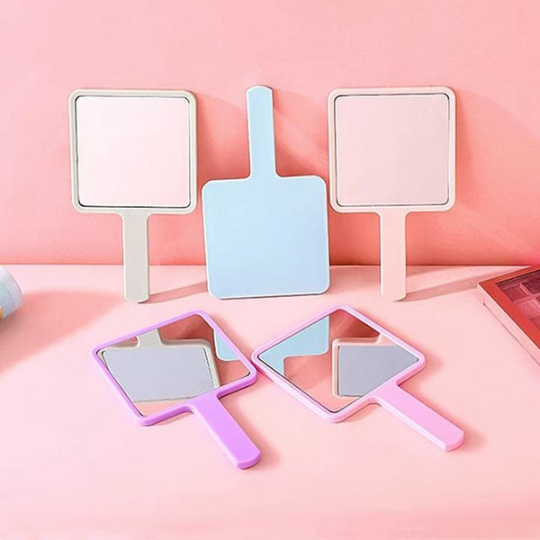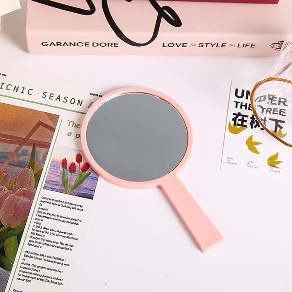 Simple Handheld HD Cosmetic Mirror Portable Handle Mirror, Style: Round Pink