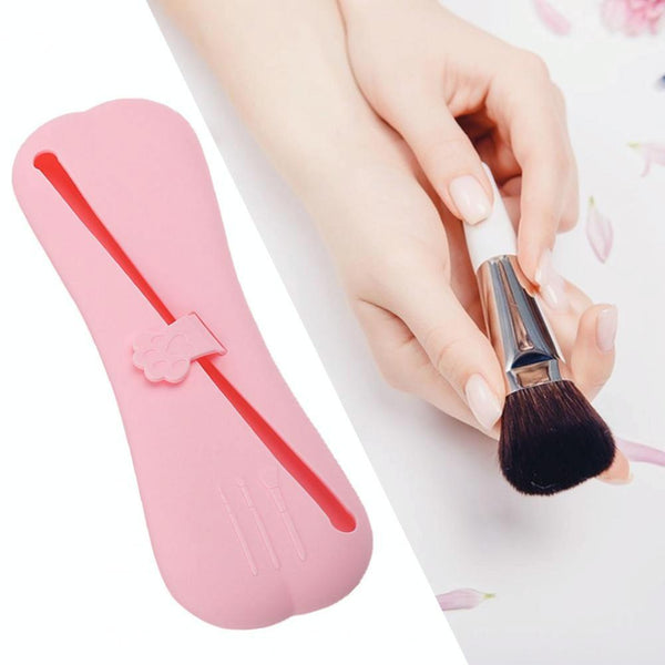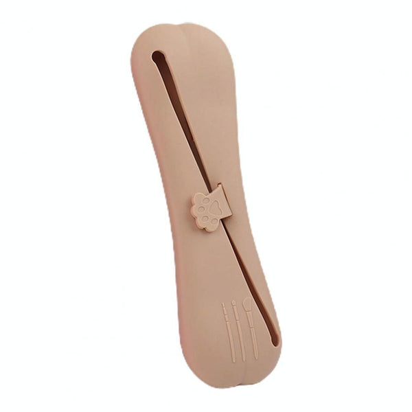 Slant Mouth Cat Paw Buckle Large Capacity Dustproof Soft Silicone Makeup Bag(Coffee)