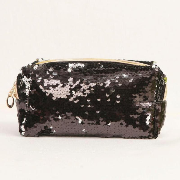 Travel Portable Sequined Anise Cosmetics Tote Storage Bag(Black)