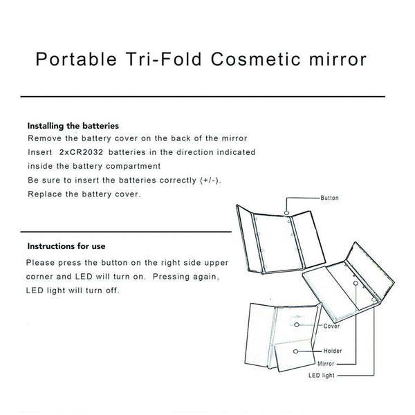 Tri-Fold Mirror LED 8 Lights Makeup Mirror(Black)