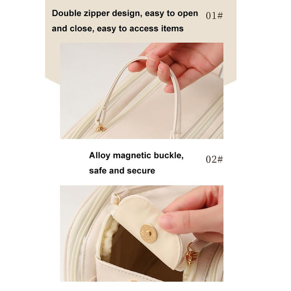 U-shaped Opening PU Leather Travel Cosmetic Bag Large Capacity Toiletries Storage Bag, Color: White