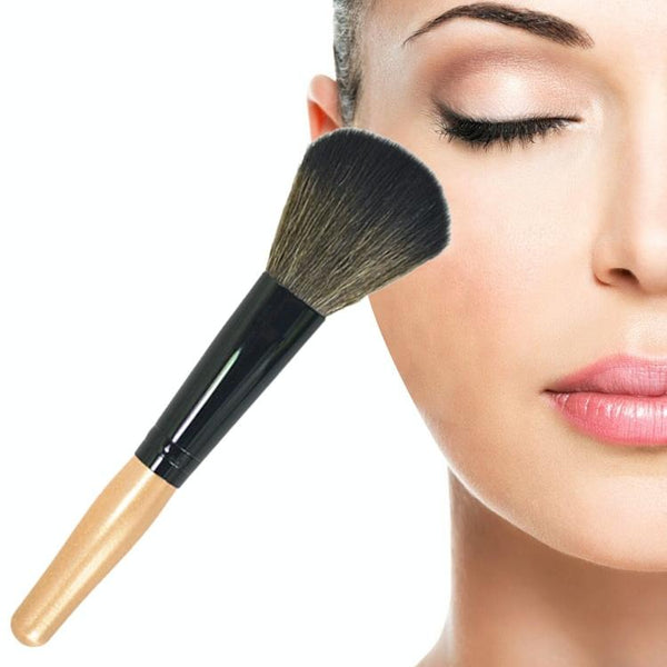 Wooden Handle Soft Head Buffer Foundation Powder Blush Brush Makeup Tools(Gold)