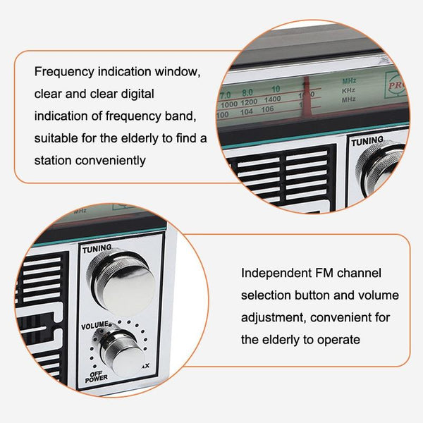 7. Independent FM channel selection button and volume adjustment, convenient for the elderly to operate