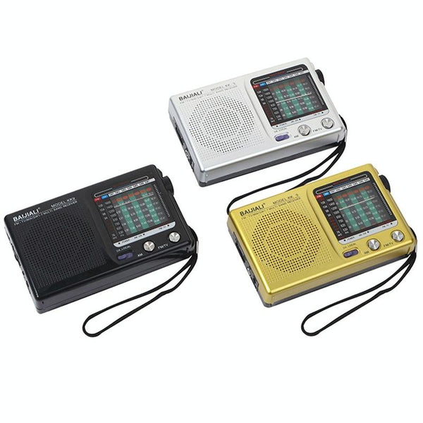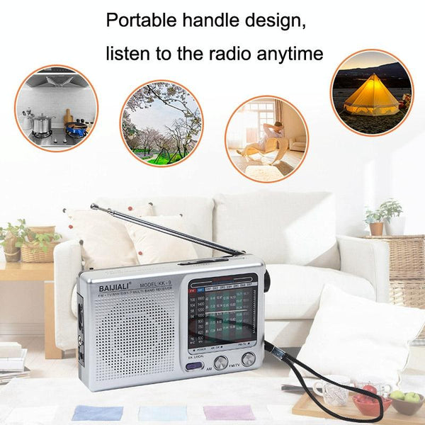 BAIJIALI KK9 Full-band Radio Player Portable Retro Multifunctional Mini Radio(Silver Gray)