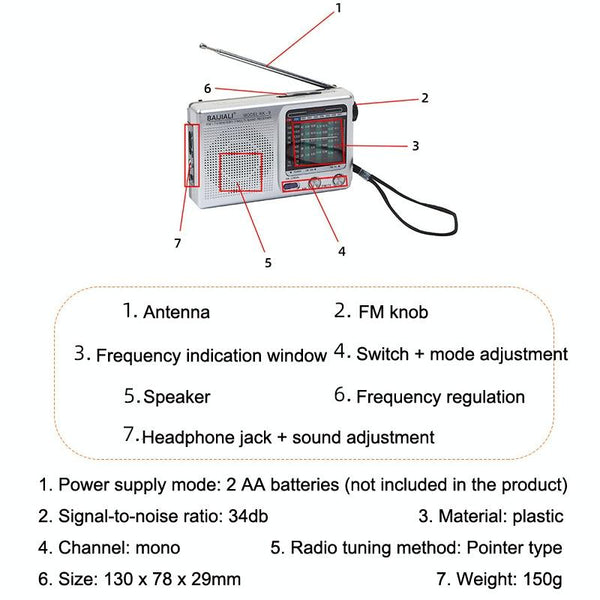 6. Frequency indication window, clear and clear digital indication of frequency band, suitable for the elderly to find a station conveniently