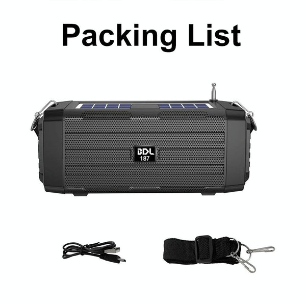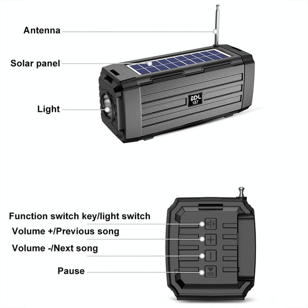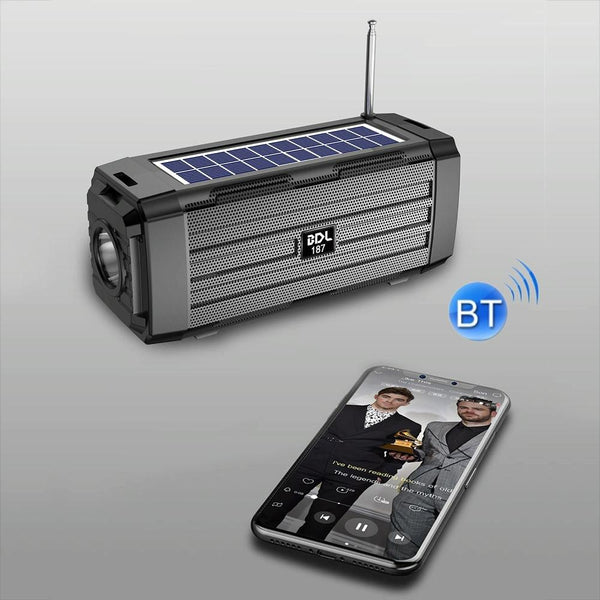BDL-187 LED Light Solar Wireless Bluetooth Speaker Portable Outdoor Camping FM Radio(Black)