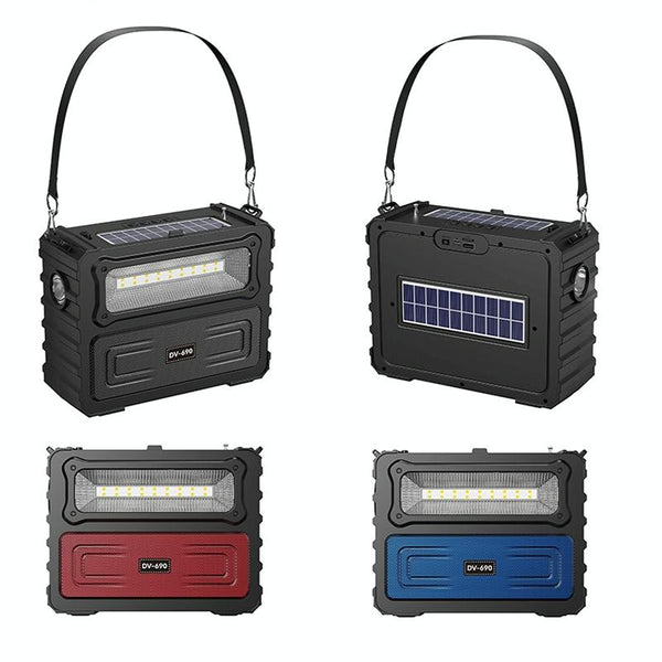 DV-690 Dual LED Light Solar Wireless Bluetooth Speaker Outdoor Camping FM Radio(Black)