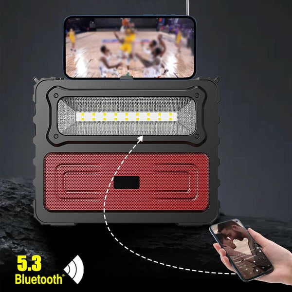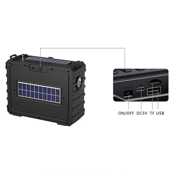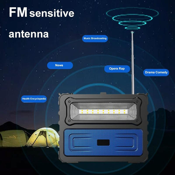 2. Functions: lighting, call, FM broadcast, Bluetooth speaker, TF, solar charging, flashlight