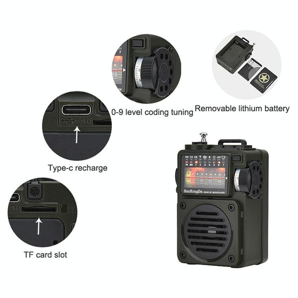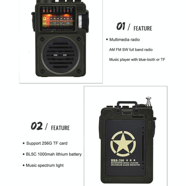 HanRongda HRD-700 Full Band Bluetooth MP3 Play Radio Station Memory Mechanical Tuning Radio(Green)