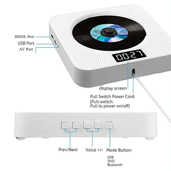 Kecag KC-608 Wall Mounted HD DVD Player Bluetooth CD Player(Blue)