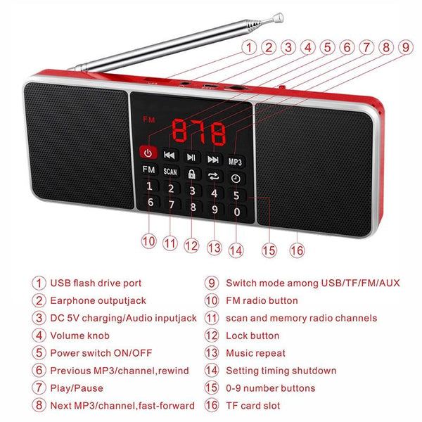 L-288FM Dual Speaker Radio MP3 Player Support TF Card/U Disk with LED Display(Gold)
