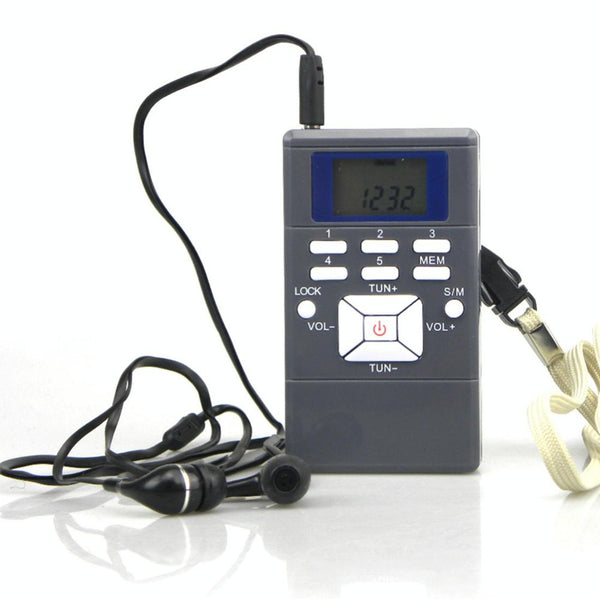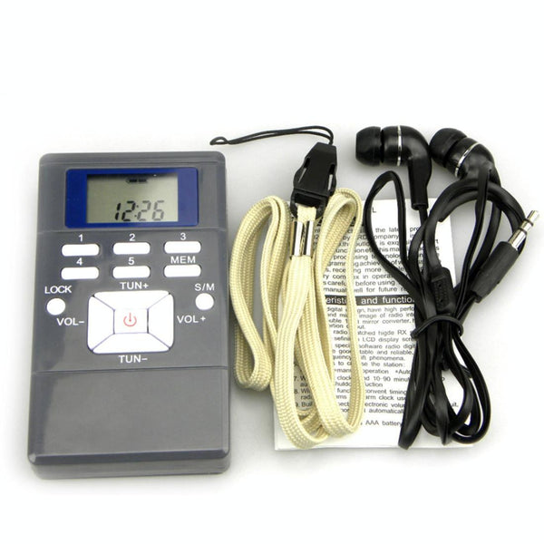 Portable Mini Frequency Modulation Digital LCD Display Radio Receiver with Earphone Jack & Lanyard
