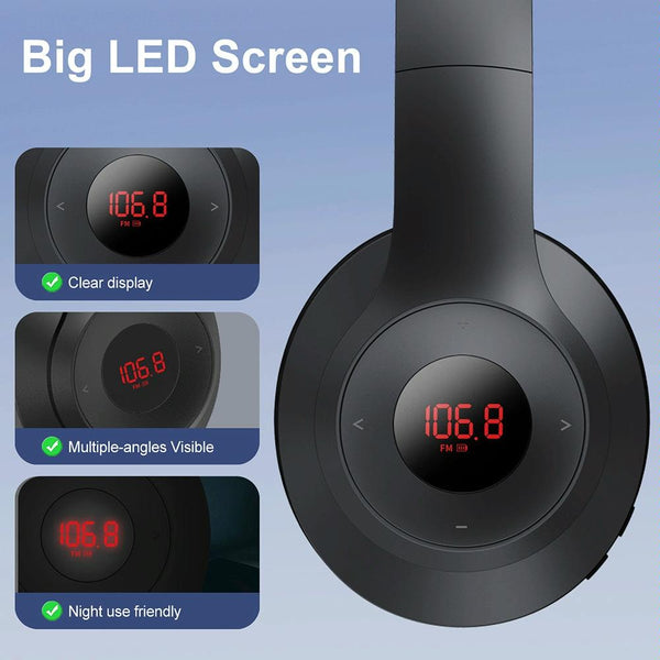 X5 Portable Digital Display Folding Headset FM Radio Headphones, Color: Charging White