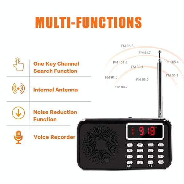 Y-619FM/AM Mini Radio MP3 Rechargeable Music Player Support TF/SD Card with LED Display(Black)