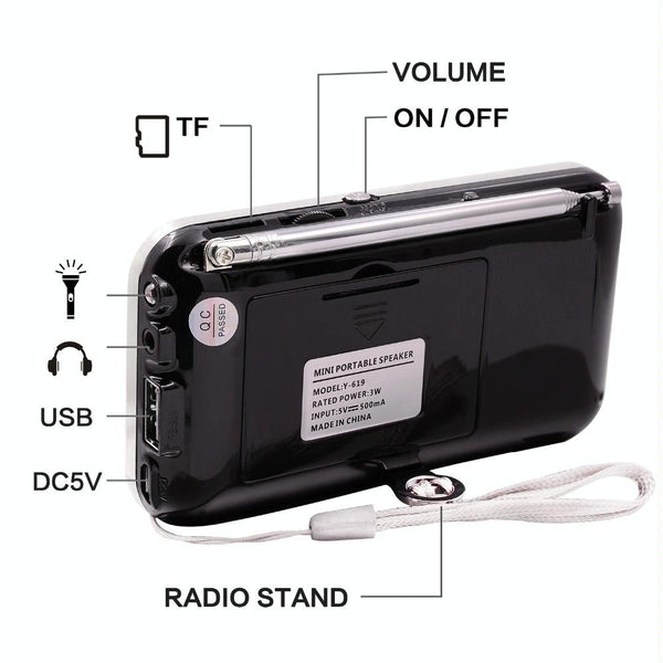 Y-619FM/AM Mini Radio MP3 Rechargeable Music Player Support TF/SD Card with LED Display(Blue)