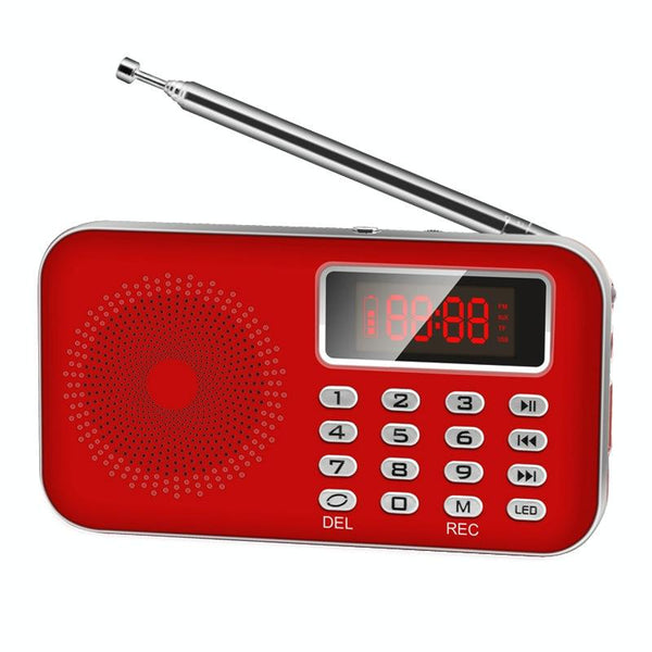 Y-619FM/AM Mini Radio MP3 Rechargeable Music Player Support TF/SD Card with LED Display(Red)