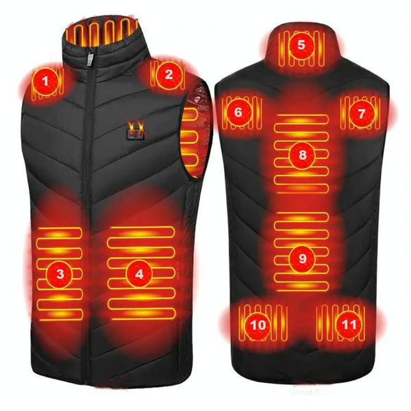 11 Area Double Control Black USB Electric Heating Undershirt Intelligent Warm Vest(4XL)