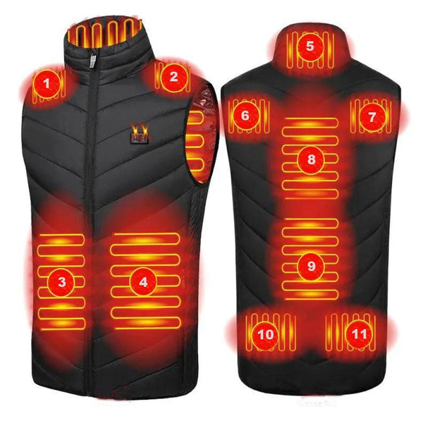 11 Area Double Control Black USB Electric Heating Undershirt Intelligent Warm Vest(5XL)