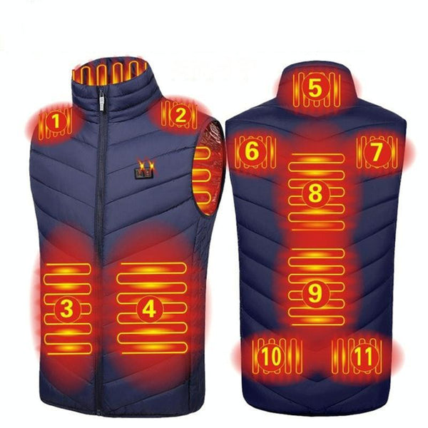 11 Area Double Control Blue USB Electric Heating Undershirt Intelligent Warm Vest(3XL)