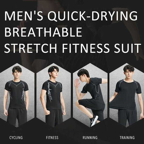 1. Breathable and quick-drying stretch fitness suit for men, comfortable moisture wicking, skin gets rid of sticky feeling. (Men's leggings + Men's long-sleeved top + Men's sweatpants))