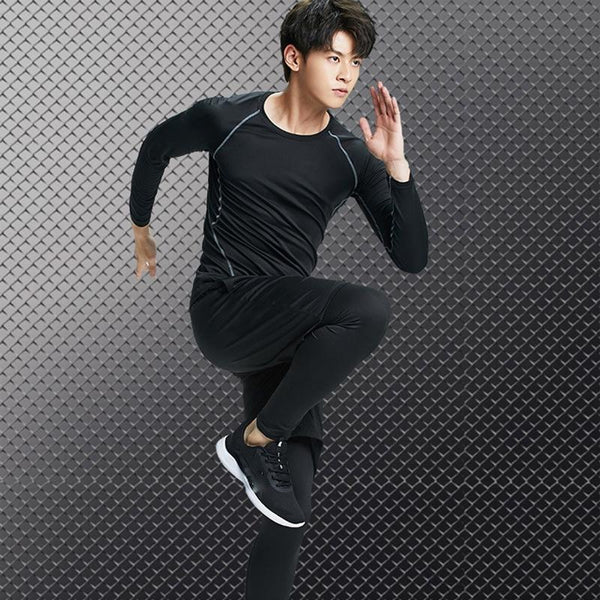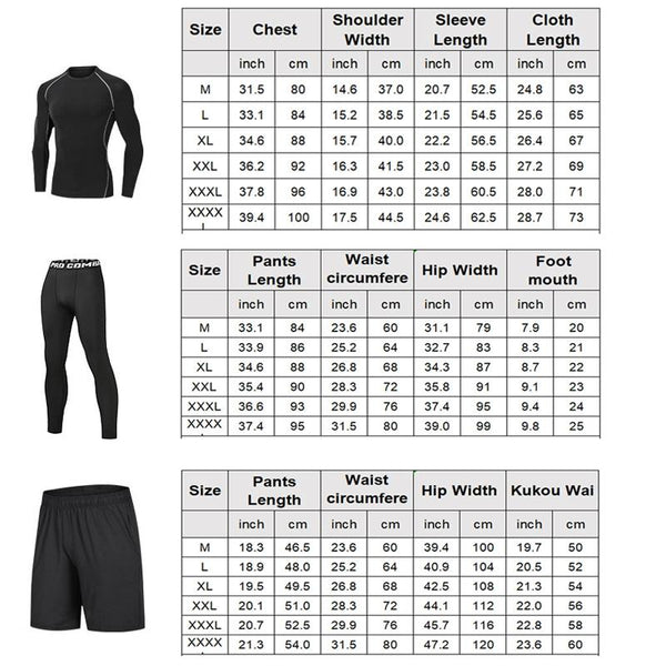 1. Breathable and quick-drying stretch fitness suit for men, comfortable moisture wicking, skin gets rid of sticky feeling. (Men's leggings + Men's long-sleeved top + Men's sweatpants))